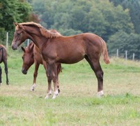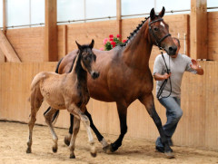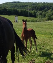 Heute war ein sehr erfolgreicher Tag für uns wärend auf unserem Gestüt das letzte Geuchberg - Fohlen für 2012, ein Stutfohlen vom Los Angeles aus unserer Dubei ( Mutter unseres Prämienhengstes Sommertraum) mittags um 15.00 Uhr das Licht der Welt erblickte.