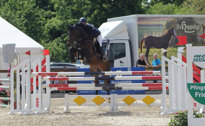 Heute waren unser Sir Madlock und Janina erfolgreich im M Springen und konnten sich bei einem großen Starterfeld einen guten 4. Platz sichern. Für die kurze Eingewöhnungsphase ein schöner Erfolg.