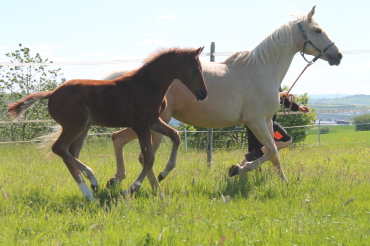 Sehr schickes, typvolles Hengstfohlen, geboren am 12.Februar 2025. Er begeistert uns seit der ersten Sekunde. Schick, Typ und tolle Bewegungen sind in unserem "Geuchbergs Fiano Gold R" aka Flip vereint.